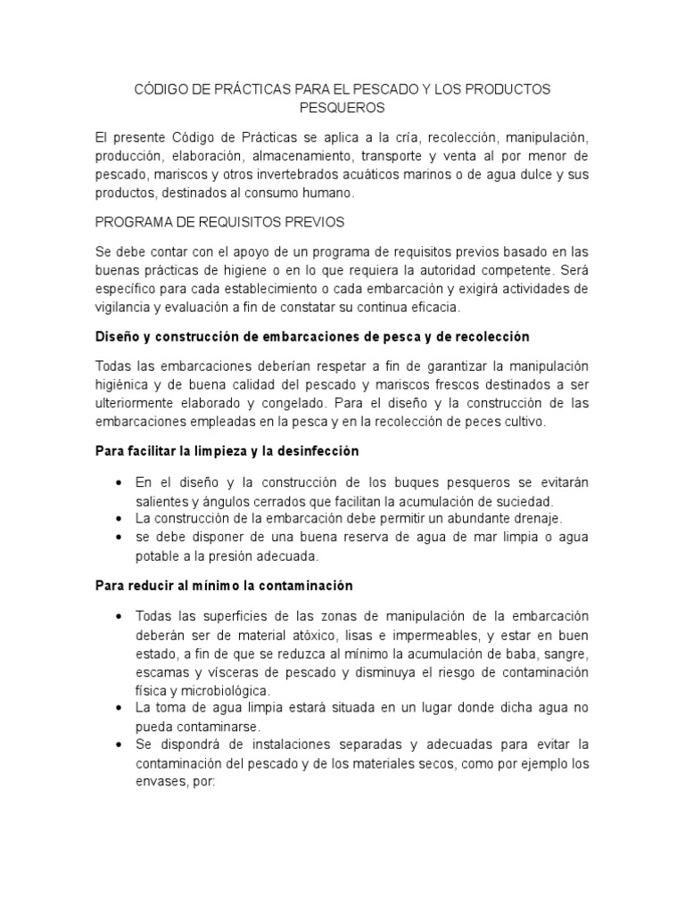 Codigo De Practicas Para El Pescado Y Los Productos Pesqueros